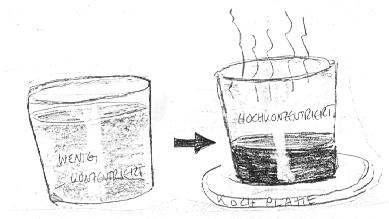 | Abb.3 zeigt zwei Töpfe mit Salzwasser. Wird Wasser verdampft, so entsteht eine geringere Menge an salzigerem Wasser. | ![]() |